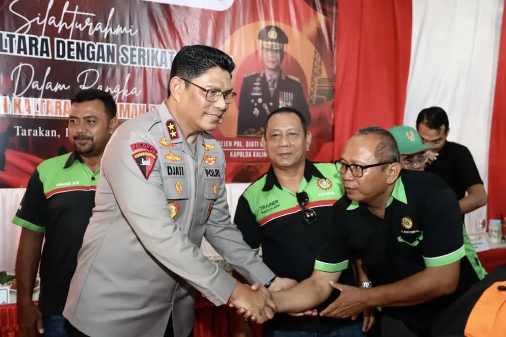TARAKAN- Bertempat di Pondok Lesehan, Jalan Slamet Riyadi, Kota Tarakan, kegiatan silaturahmi yang mempertemukan Kapolda Kalimantan Utara (Kaltara), Irjen Pol. Djati Wiyoto Abadhy, S.I.K., dengan para perwakilan serikat pekerja dan buruh dari seluruh wilayah Kaltara. Acara ini dihadiri sekitar 300 peserta dari berbagai elemen organisasi serikat pekerja dan buruh, lengkap dengan jajaran pejabat pemerintahan dan akademisi, seperti Dekan Fakultas Hukum Universitas Borneo Tarakan, Dr. Syafurddin, S.H., M.Hum., serta Sekretaris Dinas Tenaga Kerja Kota Tarakan, Hanto Bismoko, S.Sos.